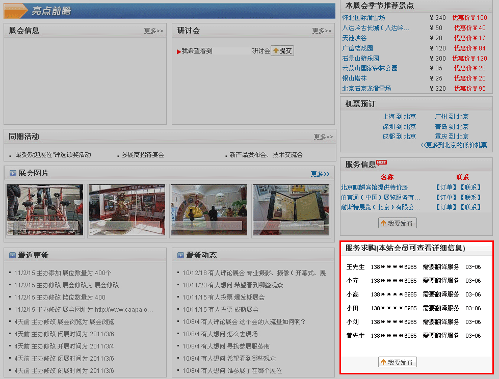 如果觀眾或展商需要搭建、運輸等服務,他們可以發布服務需求,并在展覽會的右下部顯示出來,如下圖所示:
