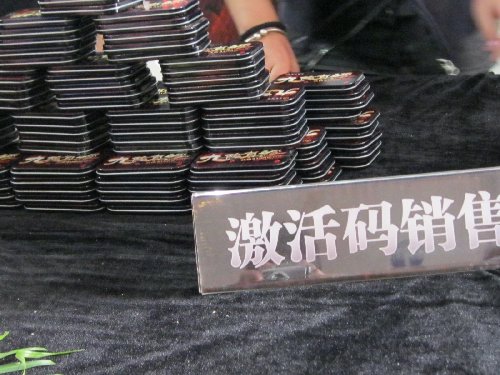 現場,網游愛好者,各家媒體,參展商云集一堂。為了吸引,更多游戲愛好者的眼球,各家參展商更是花樣百出。在一家展商周圍,聚集了眾多愛好者,出于湊熱鬧的心理,我也上前看了看,原來是現場銷售激活碼。這不看不知道在一回頭原來隊已經拍的好長了。
