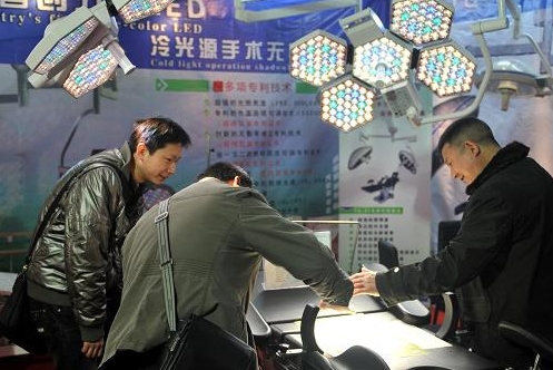 3月13日,第13屆中國醫療器械設備展上,顧客在查看無影燈的顯示效果。當日,第13屆中國醫療器械設備展在貴陽開展。據了解,本屆展會吸引了來自國內外300余家醫療器械生產企業及代理商參展,展出內容包括新型醫療器械、診斷治療設備、醫療輔助設備等。(來源:新華網)