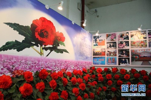 4月12日,參觀者在北京展覽館舉辦的第十四屆中國國際花卉園藝展覽會上參觀“金正日花”。“金正日花”屬菊科,為一年生草本植物。該花花紅葉綠,花朵直徑在15厘米以上,莖葉粗壯,花株高40厘米左右。據介紹,“金正日花”是一名日本人根據設想用20多年的時間于1988年2月培育出的品種,培育成功后作為禮物獻給朝鮮勞動黨總書記金正日,被命名為 “金正日花”。(來源:新華網)