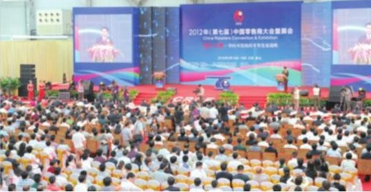 13日上午,由國家商務部支持,中國商業聯合會和江蘇省人民政府聯合主辦的2012年(第七屆)中國零售商大會暨展會在昆山國際會展中心隆重開幕。來自20多個國家和地區的1500多名各界人士云集昆山,圍繞“轉型·創新——導向可持續的零售發展戰略”主題,共同探討新經濟形勢下的中國零售業轉型與創新問題。