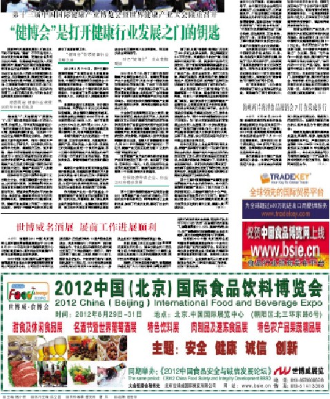中國食品報(bào)是本屆展會的全程推廣機(jī)構(gòu),6月4日第一期關(guān)于中國食品飲料展覽會的全新面貌已展現(xiàn)會展經(jīng)濟(jì)???。第二期的報(bào)刊將在6月18日出版,版面內(nèi)容主要集中在展會的新聞信息及參展客戶的品牌推廣方面,希望已經(jīng)報(bào)名的參展客戶,及時(shí)提交您的產(chǎn)品信息到組委會新聞編輯部,以便做好您展前的宣傳工作。沒有的報(bào)名的客戶,也希望您能夠多多關(guān)注北京食品飲料博覽會暨特色飲料專題展,以及中國食品報(bào)會展經(jīng)濟(jì)版的相關(guān)信息內(nèi)容,我們希望通過食品報(bào)的權(quán)力推廣,能夠給您帶來更好的宣傳,也能給您這次參展帶來更好的效益。
