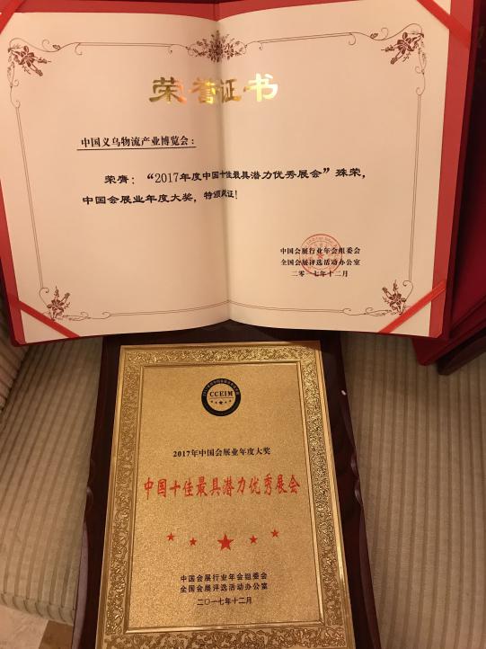 同時,隨著近年來義烏電子商務發展很快,交易量不斷提升,人們對物流的要求也就越來越高,義烏物流展是基于中國國際電子商務博覽會衍生發展的專業品牌物流展會。從2016年開始舉辦,每年一屆,目前已成功舉辦兩屆,屬于培育期展會。此次在大會上榮獲“最具潛力優秀展會”,無疑是對義烏物流展的莫大鞭策。今年舉辦的物流展吸引了來自國內外200余家企業參展,展會三天成交額2.64億元,到會專業采購商13125人次,在線博覽會訪問量為263786人次,其中展期訪問量為53456人次。