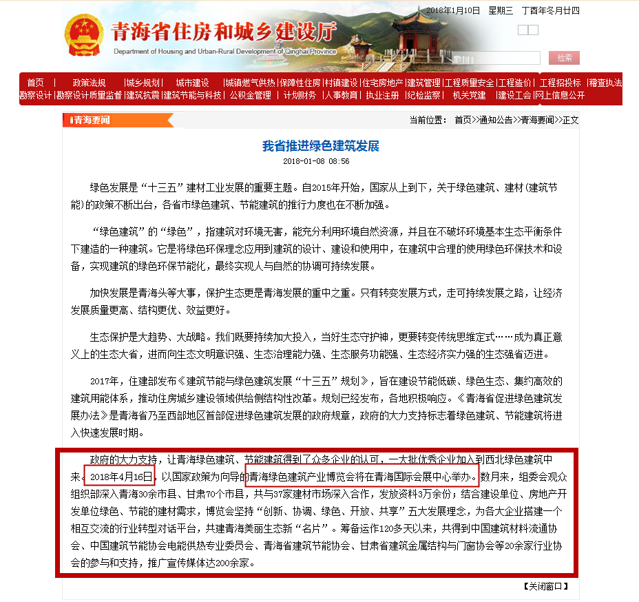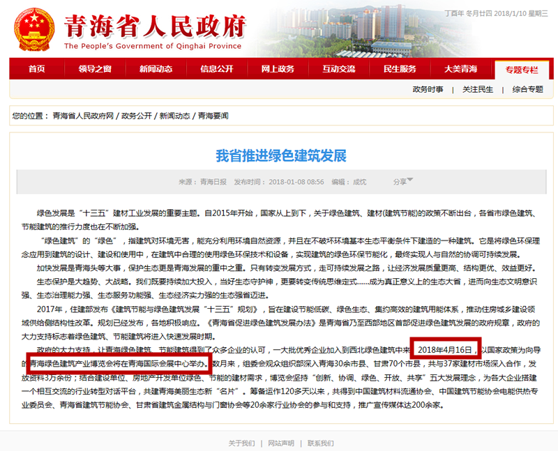 政府的大力支持,讓青海綠色建筑、節能建筑得到了眾多企業的認可,一大批優秀企業加入到西北綠色建筑中來。2018年4月16日,以國家政策為向導的青海綠色建筑產業博覽會將在青海國際會展中心舉辦。數月來,組委會觀眾組織部深入青海30余市縣、甘肅70個市縣,共與37家建材市場深入合作,發放資料3萬余份;結合建設單位、房地產開發單位綠色、節能的建材需求,博覽會堅持“創新、協調、綠色、開放、共享”五大發展理念,為各大企業搭建一個相互交流的行業轉型對話平臺,共建青海美麗生態新“名片”。籌備運作120多天以來,共得到中國建筑材料流通協會、中國建筑節能協會電能供熱專業委員會、青海省建筑節能協會、甘肅省建筑金屬結構與門窗協會等20余家行業協會的參與和支持,推廣宣傳媒體達200余家。