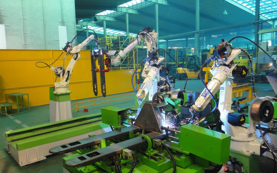 由寧波全友佳和機器人科技有限公司帶來的“搬運車車架機器人焊接搬運柔性生產線”