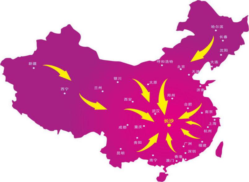 1.長沙作為湖南省省會(huì),承東啟西,連南接北綜合競(jìng)爭(zhēng)力居全國前列,正在逐發(fā)展成為中國經(jīng)濟(jì)主軸的新亮點(diǎn)和商貿(mào)物流新中心,被譽(yù)為進(jìn)軍中部地區(qū)橋頭堡城市。以長沙為中心向東、西、南、北圍繞輻射長江中游武漢城市圈、長株潭城市群、環(huán)鄱陽湖經(jīng)濟(jì)圈等30座城市,是國內(nèi)品牌及眾多國際品牌開拓中部的首選市場(chǎng);