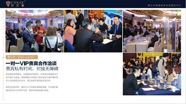 第三天所有和中介談合作的方式都是通過我們在線預約系統提前安排好,您可以尋找您最合適的項目或中介,現場會以預約好的行程進行洽談,洽談過程中可以品嘗項目方帶來的異國美食。