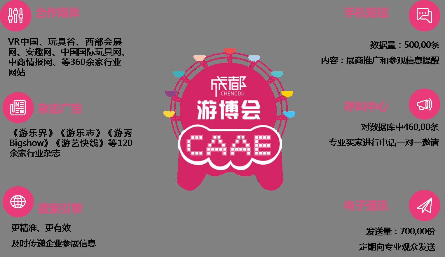 2018成都游博會將匯聚上百家優(yōu)質(zhì)品牌展商,聯(lián)動行業(yè)產(chǎn)業(yè)發(fā)展,把握行業(yè)發(fā)展趨勢,將新產(chǎn)品、新技術(shù)、新創(chuàng)意嶄露頭角,展出風(fēng)采、展出精彩、展出未來,秉持文旅游樂產(chǎn)業(yè)發(fā)展新理念,在本次展會上以新技術(shù)、新應(yīng)用的創(chuàng)新和推廣出發(fā),結(jié)合科技化、智能化、互聯(lián)網(wǎng)多維度結(jié)合出發(fā)。智造愿景、縱橫大觀、高效協(xié)調(diào)發(fā)展平臺。