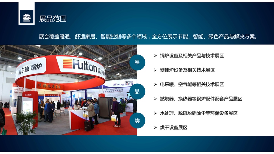 此次展會類品范圍覆蓋了暖通、舒適家居、智能控制等多個(gè)領(lǐng)域,展會設(shè)立了空調(diào)、制冷設(shè)備及配件配套展區(qū),散熱器、熱計(jì)量、地暖、水暖等產(chǎn)品展區(qū),太陽能熱水器相關(guān)產(chǎn)品及技術(shù)展區(qū),生物質(zhì)能及相關(guān)設(shè)備展區(qū),其他取暖采暖設(shè)備技術(shù)新品展區(qū),新風(fēng)、凈化、凈水等產(chǎn)品及技術(shù)展區(qū),可謂海納百川,令人目不暇接。齊全的展品不僅僅為商家和用戶提供了更為全面的選擇,更全方位地展示了節(jié)能、智能、綠色產(chǎn)品與解決方案,為清潔能源的應(yīng)用提供了全新的思路。