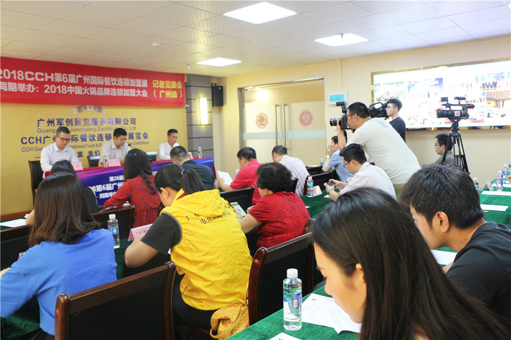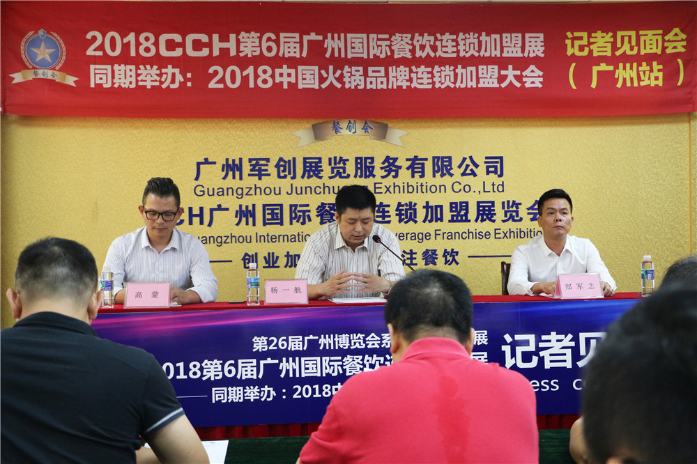 2018第6屆CCH廣州國際餐飲連鎖加盟展覽會(以下簡稱:CCH廣州餐飲連鎖展),繼6月28日成都新聞發布會后,于7月18日在廣州再次舉辦記者見面會。以廣州市協作辦室展貿處楊一航處長為代表的主辦方單位領導、CCH廣州餐飲連鎖展創始人鄭軍志先生、廣東經濟科教頻道【今日一線】、南方日報、廣州日報、鳳凰新聞、中新社等重量極媒體進行了現場報道。