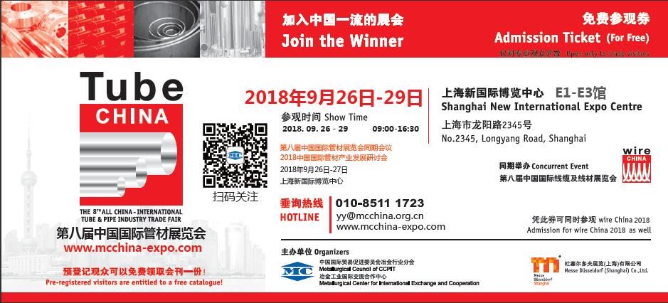 第八屆中國國際管材展覽會參觀邀請門票