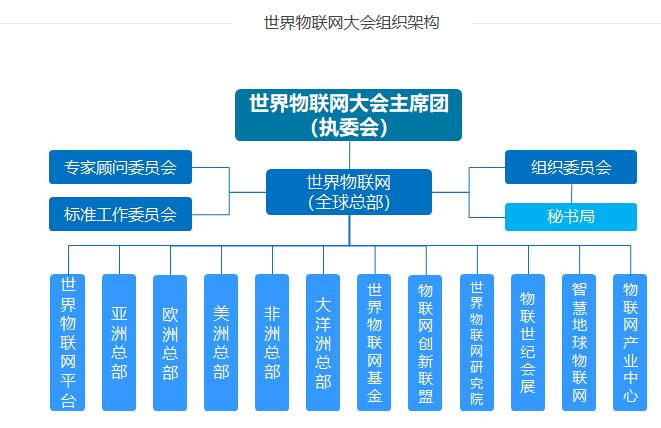 世界物聯網大會設有大會組委會、執委會、專家顧問委員會、秘書局等機構;建有世界物聯網基金、物聯網創新聯盟、世界物聯網基金會、世界物聯網研究院、物聯世紀會展股份有限公司、智慧地球物聯網集團等多個國際合作平臺機構,發布了《世界物聯網北京宣言》,建立了《世界物聯網排行榜》。