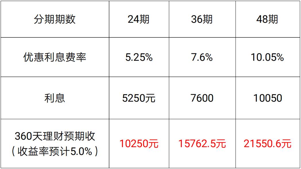360天理財預期收益遠高于分期手續費—以10萬元為例