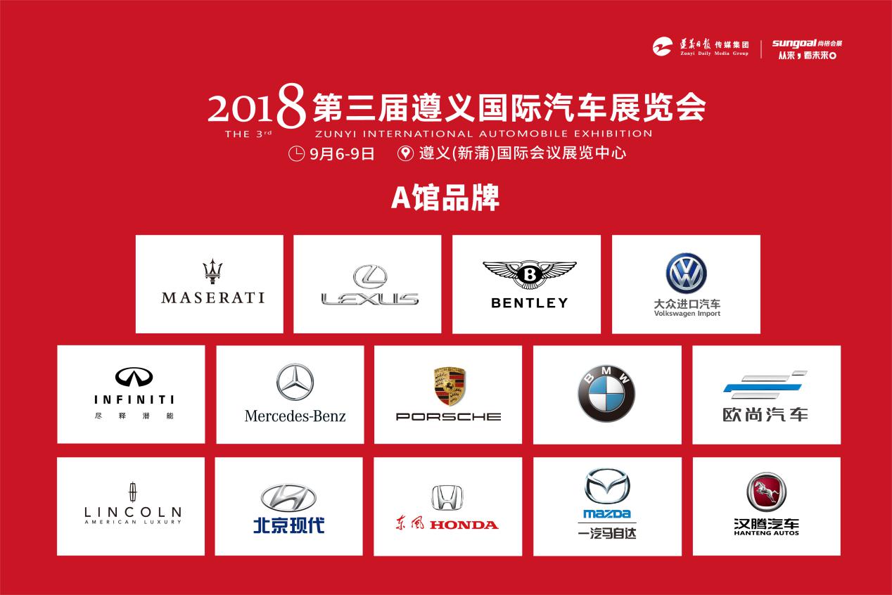 2018第三屆遵義(新蒲)國際汽車展覽會(huì),將于9月6日-9日在遵義(新蒲)國際會(huì)議展覽中心隆重舉行,本屆車展將不斷創(chuàng)新和突破,在規(guī)模、檔次、優(yōu)惠力度上再次刷新遵義車市歷年紀(jì)錄,力爭為車商搭建最聚人氣、最能售車的服務(wù)平臺(tái),為市民打造最佳賞車、最惠購車的體驗(yàn)平臺(tái)。