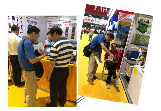 組委會工作人員(左)與廠商洽談參加武漢國際家具展相關事宜