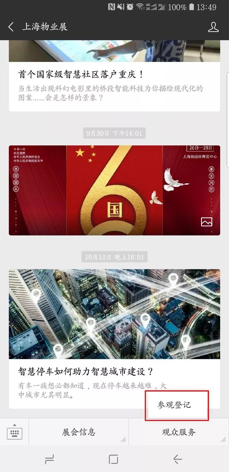 2019上海國際物業管理產業展覽會觀眾預登記開啟后,電腦端用戶可以登錄展會官方網站:www.cpmexpo.com,移動端用戶可以通過展會官方微信:上海物業展,點擊首頁“觀眾登記”完成觀眾注冊,不僅可免費免排隊入場,同時,到場更有好禮相送!