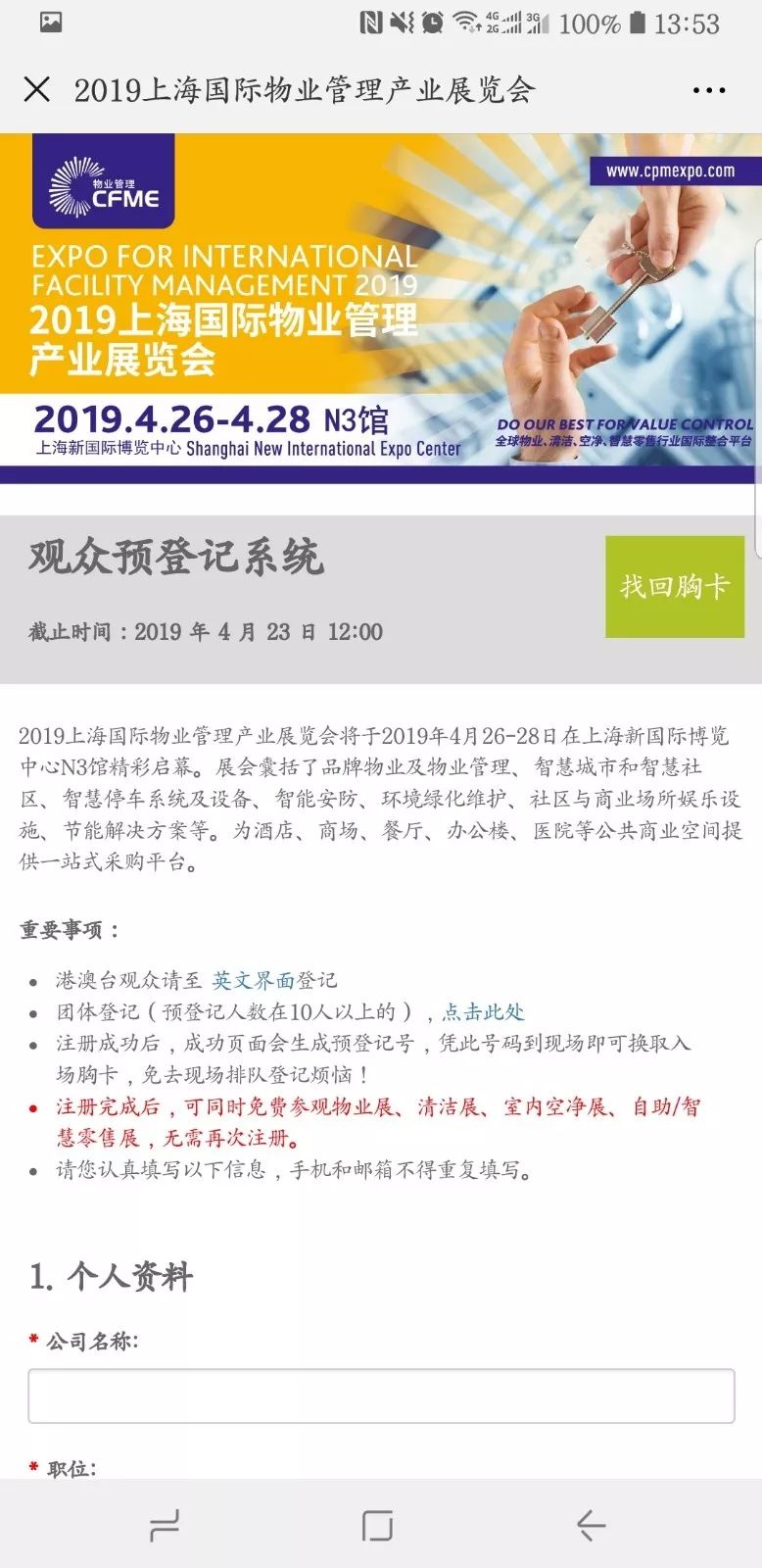 2019上海國際物業管理產業展覽會觀眾注冊系統于2018年10月17日正式上線,提前預登記即可免費免排隊入場!