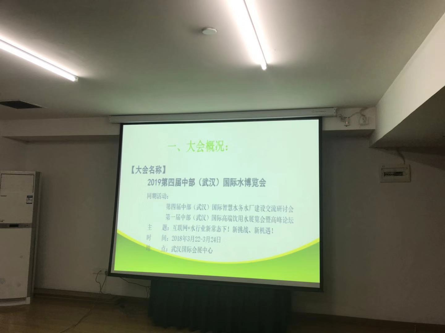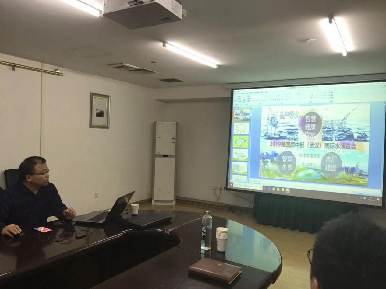 其次由水博會組委會項目運營總監胡兵為參加會議的相關領導介紹展示2019中國(武漢)國際水博覽會項目實施方案的講解,詳見下圖