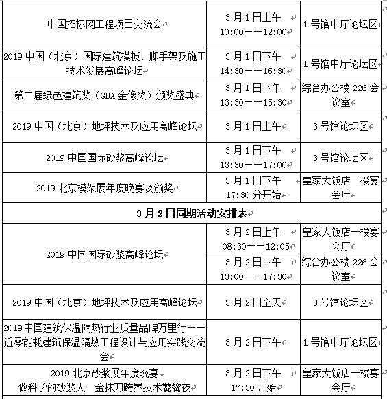ConstrucTech 2019建筑四新展召開期間還將舉辦多場行業(yè)活動(dòng),包括:2019中國模板腳手架產(chǎn)業(yè)發(fā)展峰會、中國砂漿周系列峰會、2019中國地坪技術(shù)與應(yīng)用論壇、2019中國建筑保溫隔熱行業(yè)質(zhì)量品牌萬里行——近零能耗建筑保溫隔熱工程設(shè)計(jì)與應(yīng)用實(shí)踐交流會、現(xiàn)場施工演示會、工程項(xiàng)目交流會、第二屆綠色建筑獎(jiǎng)(GBA金像獎(jiǎng))頒獎(jiǎng)盛典、2019北京模架展年度晚宴、2019北京砂漿展年度晚宴、ConstrucTech建筑師設(shè)計(jì)師對話等近10余場活動(dòng)。同期活動(dòng)安排如下: