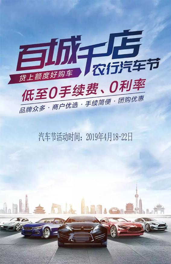 農業銀行:百城千店農行購車節,低至0手續費、0利率