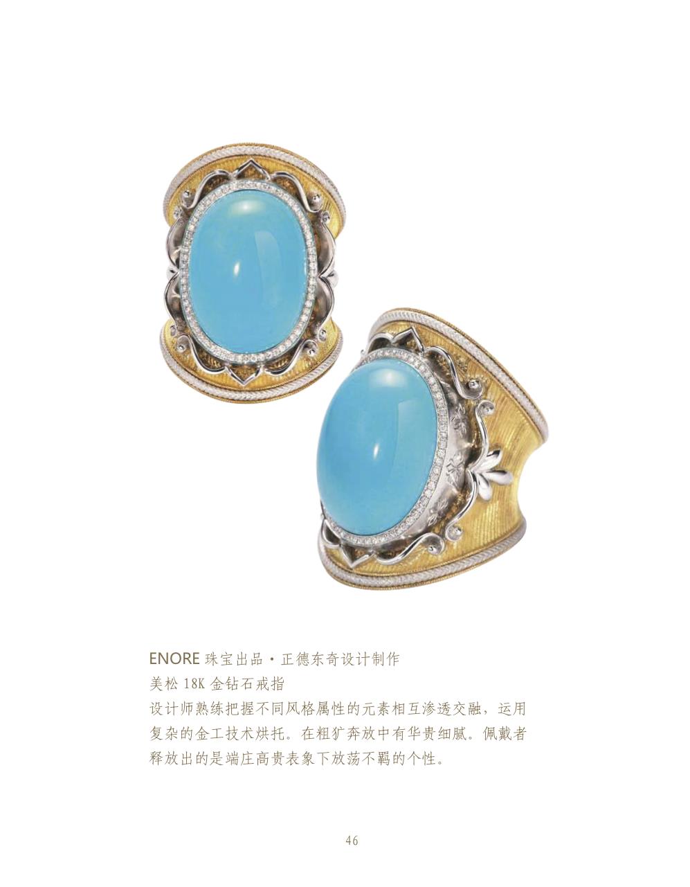 富有創(chuàng)作靈感的珠寶設(shè)計師都以獨特的個人風(fēng)格和方法去表達首飾創(chuàng)作,對于他們來說,珠寶首飾的演繹猶如一片黃金瀚海與寶石所組合的景致。設(shè)計師追求嶄新造型和精典創(chuàng)作概念,杰出的工匠致力克服一切工藝上的障礙,不論是復(fù)雜的結(jié)構(gòu)和金表面的特殊處理效果,或是寶石鑲嵌的精密程度,都精心計算。設(shè)計與工藝的完美結(jié)合,制作出與時俱進的珠寶首飾藝術(shù)品。