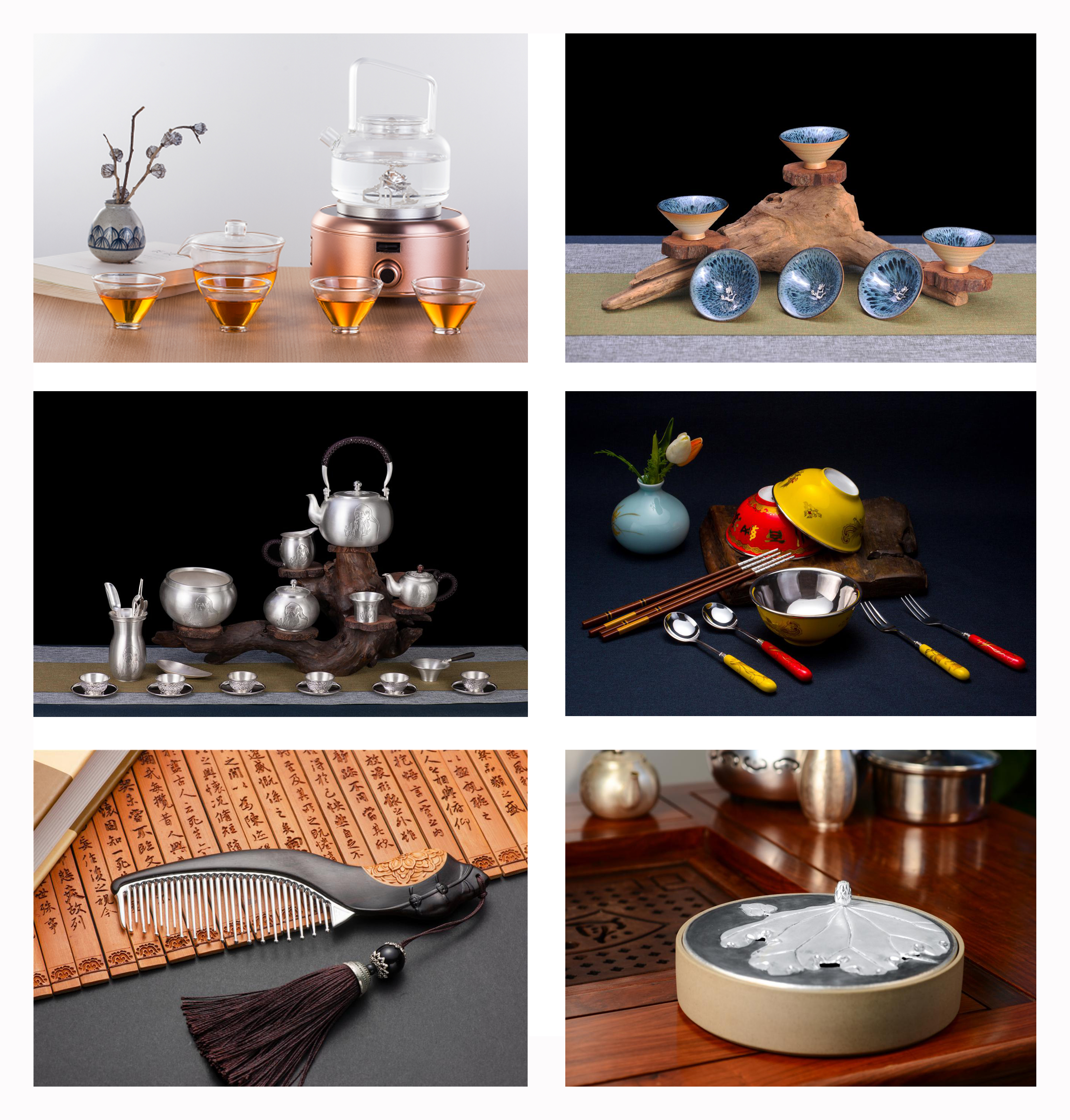 銀品生活品牌銀器是工藝美術大師原創設計,由中國權威工藝大師親自監制、純手工打造,確保產品創作的高品質。于器形、壺流、壺蓋、壺鈕、把手,千變萬化,融匯雕刻、繪畫、書法三大藝術精粹,集實用、養生、美觀為一體的銀品生活銀器,蘊藏著銀品生活工匠大師們對自然萬物的理解及剖析,傾力為你呈現流光溢彩的精致與奢華,重現千年風雅,只為知音賞。