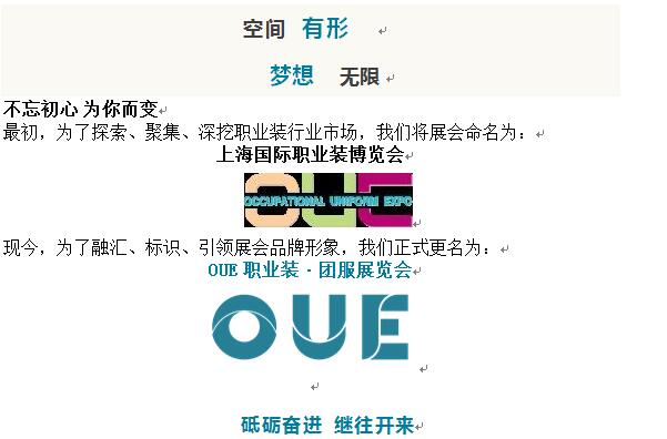 OUE上海國際職業裝博覽會更名:OUE職業裝·團服展覽會
