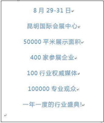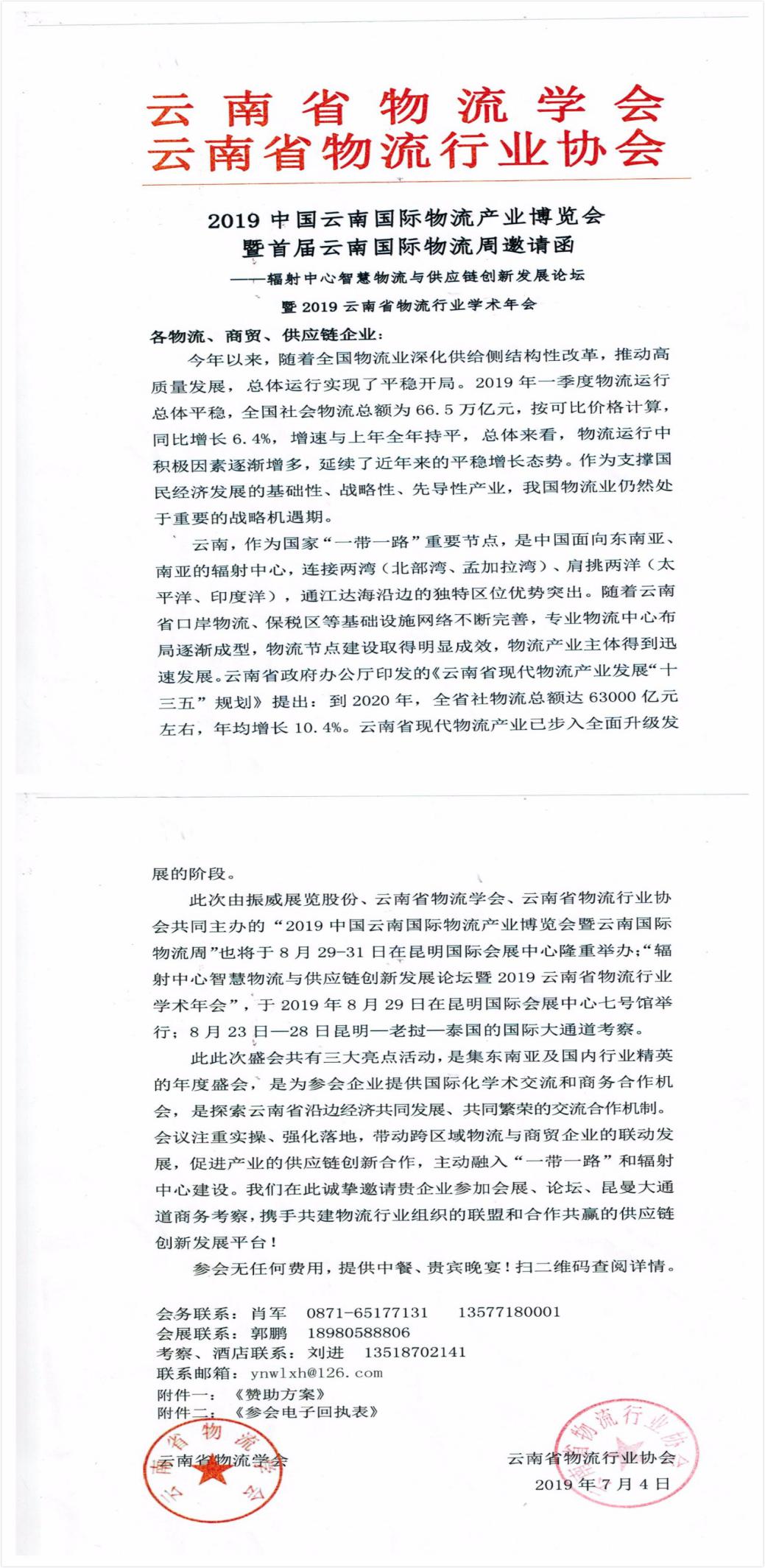 由中國(guó)國(guó)際商會(huì)云南商會(huì)、振威展覽股份、云南省物流學(xué)會(huì)、云南省物流行業(yè)協(xié)會(huì)聯(lián)合主辦,云南省維修行業(yè)協(xié)會(huì)商用車分會(huì)協(xié)辦,昆明市發(fā)展和改革委員會(huì)、昆明市工業(yè)和信息化局、昆明市商務(wù)局、昆明市交通運(yùn)輸局、昆明市科學(xué)技術(shù)局、昆明市城市管理局、昆明市環(huán)保局 云南機(jī)場(chǎng)集團(tuán)有限責(zé)任公司、云南路橋股份有限公司、云南省電力行業(yè)協(xié)會(huì)支持,成都振威世展展覽有限公司承辦的2019云南國(guó)際物流產(chǎn)業(yè)博覽會(huì)暨云南省國(guó)際物流周將于8月29日在昆明國(guó)際會(huì)展中心盛大召開!