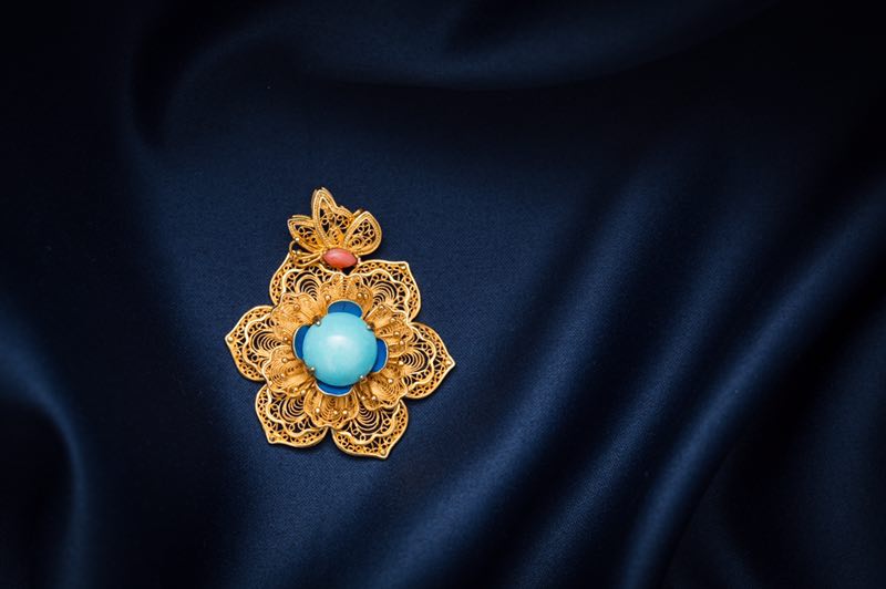 花絲蝶戀花松石吊墜 原創(chuàng)設計產(chǎn)品