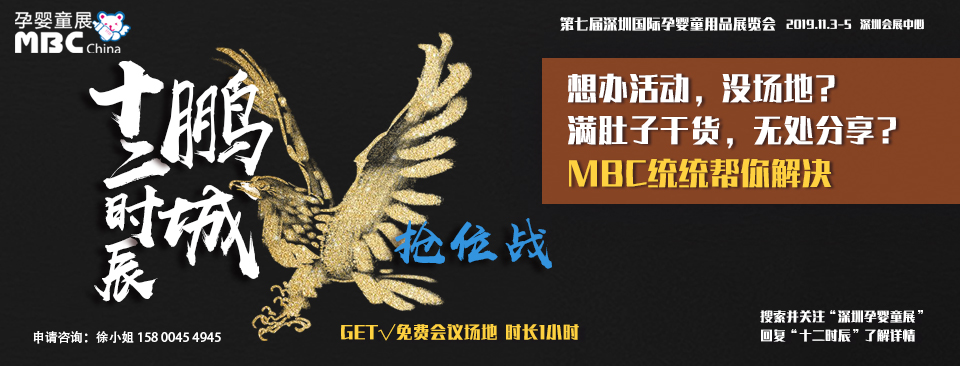 2019年11月3-5日連續舉辦七屆的MBC深圳孕嬰童展將在鵬城與大家見面!MBC作為專業的母嬰行業資源整合平臺,也將貢獻自己的一份力量。將為MBC 2019已參展母嬰企業或是母嬰行業大咖級人物免費提供活動舉辦場地或是干貨分享環節,時長1小時。我們來搭臺,您們來唱戲!MBC深圳孕嬰童展與你一起助力中國母嬰產業品質升級!