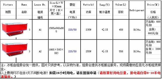 【溫馨提示】請(qǐng)將冰柜租賃申請(qǐng)表及租賃冰柜費(fèi)用憑證,務(wù)必在8月25日前發(fā)郵件至組委會(huì)處;