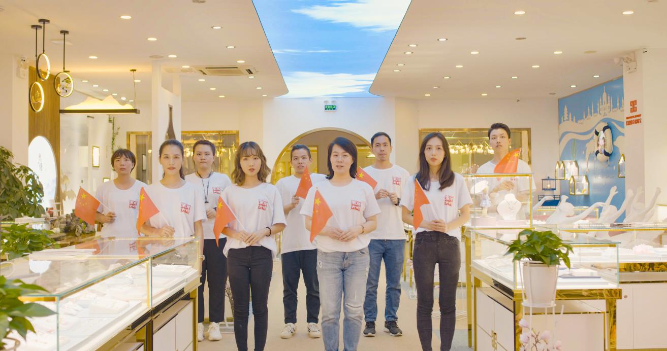 “我和我的祖國,一刻也不能分割……”這是烙在心底的旋律,是對祖國永遠的贊歌。回首70年的崢嶸歲月和光輝歷程,中華民族從“一窮二白”到發展成為世界上最具活力的經濟體之一,實現了富強起來的歷史性飛躍。在五星紅旗的飄揚下,在嘹亮的歌聲中,展示了珠寶人和祖國一起前行的決心和熱忱。