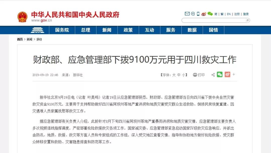 頻發(fā)的火災事故對人民群眾以及社會財產(chǎn)的安全造成較大的威脅,消防安全意識逐步提高,促使消防成為主動需求。今年9月19日,財政部、應急管理部就向四川省下?lián)?b>中央自然災害救災資金9100萬元,主要用于支持幫助做好阿壩州等地嚴重洪澇和地質災害受災群眾生活救助、倒損民房恢復重建、因災遇難人員家屬撫慰等救災工作。