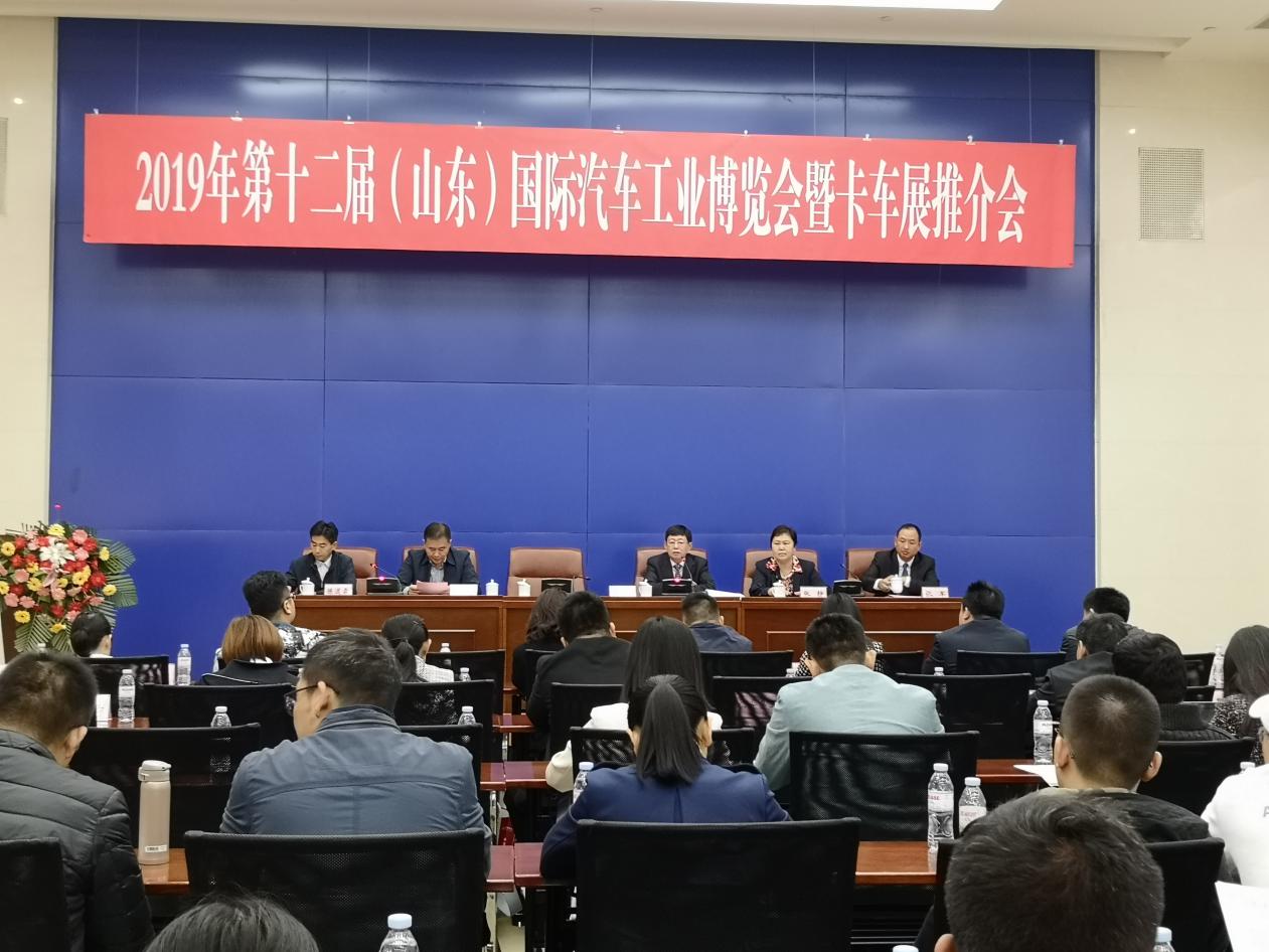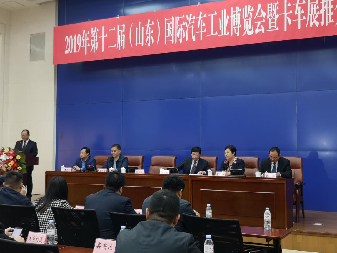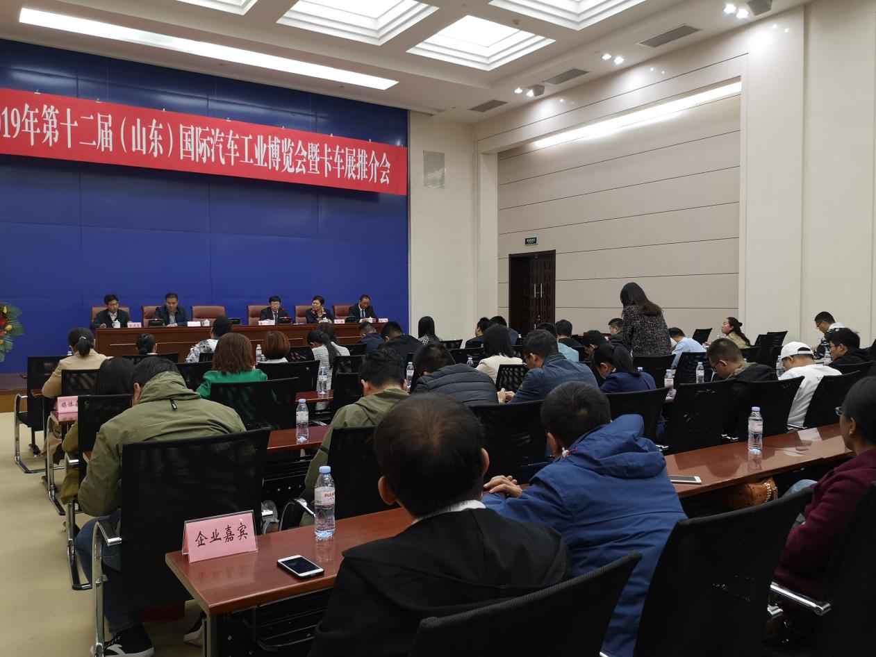 10月15日,2019第十二屆(山東)國際汽車工業博覽會暨卡車展推介會在濟南龍奧大廈舉行,會議由濟南市貿促會會長翟旭東主持,濟南市政府副秘書長楊永斌、山東省市汽車行業協會常務副會長魏學勤、濟南市商務局副局長王志剛、濟南市貿促會巡視員張靜應邀出席,濟南市會展辦、山東國際會展中心等省市相關部門領導也參加本次推介會。全國主要汽車生產和銷售企業代表、省市媒體記者近100人,見證了本次推介會的舉行。