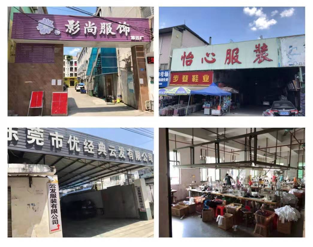 惠州服裝廠主要集中在博羅縣園洲鎮、石灣鎮和石碣鎮,石灣鎮主要是做服裝和手袋箱包,兩者各占一半,工廠數量僅有園洲鎮的三分之一,而且相對分散,但服裝品類相對豐富,休閑服、女裝、童裝等,多以代加工為主。主辦方出差的小伙伴更是在周邊各個工廠都派發了宣傳廣告。