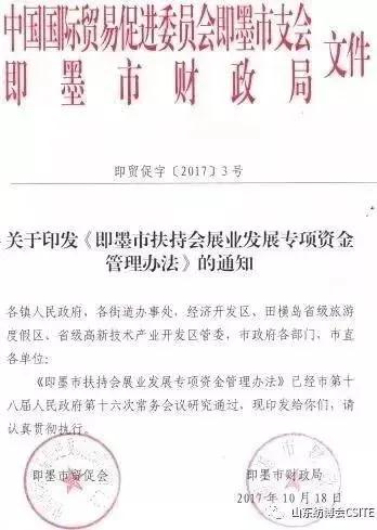2017年,即墨政府下發(fā)關于企業(yè)參展可享補貼的紅頭文件!2018年、2019年即墨當?shù)氐膮⒄蛊髽I(yè)輕松享受到了福利政策。