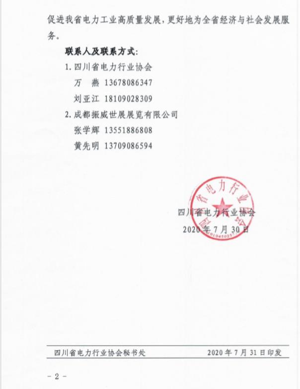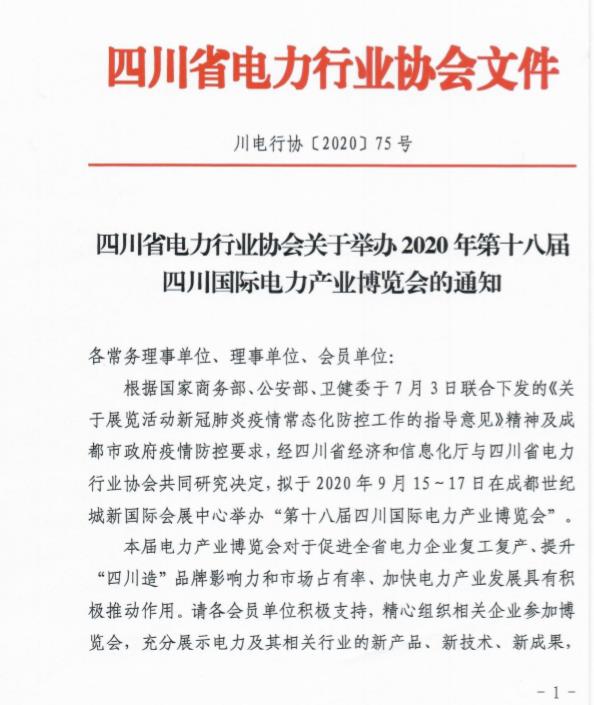 四川省電力行業(yè)協(xié)會關于舉辦2020年第十八屆四川國際電力產業(yè)博覽會的通知