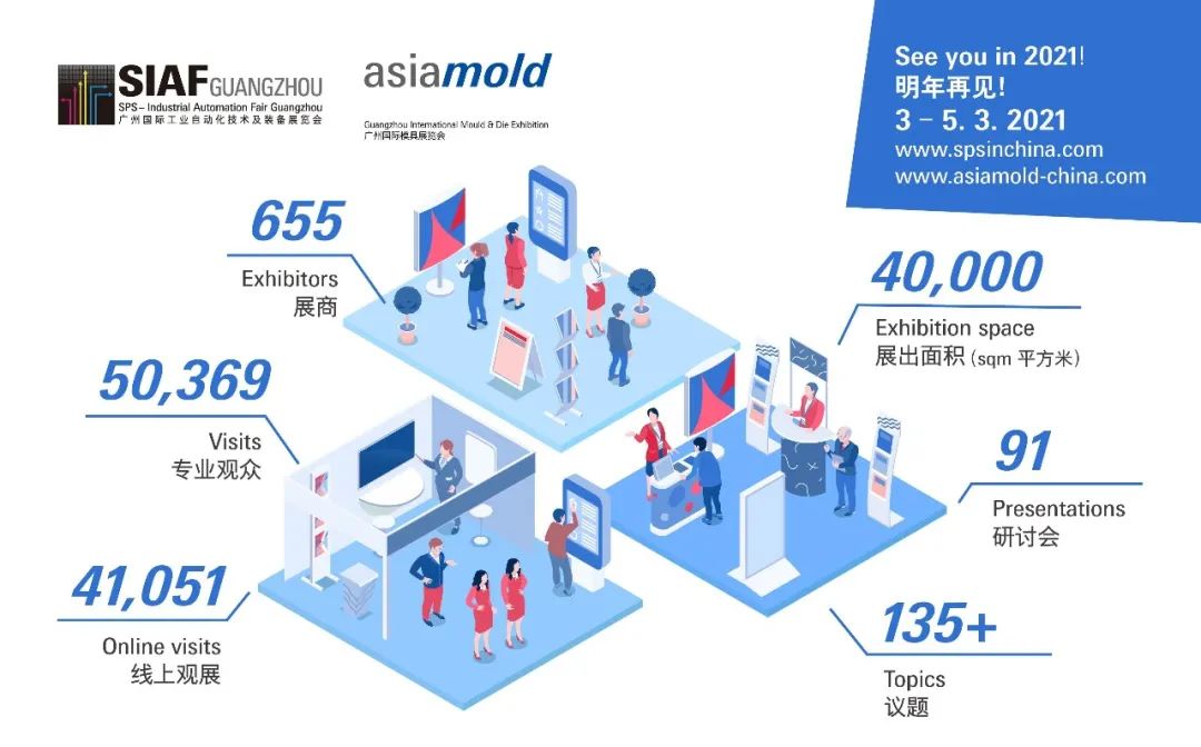 SIAF廣州國(guó)際工業(yè)自動(dòng)化技術(shù)及裝備展覽會(huì)及同期Asiamold廣州國(guó)際模具展覽會(huì),在廣州中國(guó)進(jìn)出口商品交易會(huì)展館舉辦,總面積達(dá) 4萬(wàn)平方米。兩場(chǎng)展會(huì)共迎來(lái)655家參展商,參觀入場(chǎng)總數(shù)達(dá)50,369,線上直播觀展總數(shù)達(dá)41,051人次。涵蓋多種智能工業(yè)自動(dòng)化解決方案、模具制造、3D打印、金屬加工、鑄造、壓鑄、激光及軸承技術(shù),為制造業(yè)提供一站式采購(gòu)平臺(tái),助力全球眾多企業(yè)與生產(chǎn)線恢復(fù)業(yè)務(wù)。