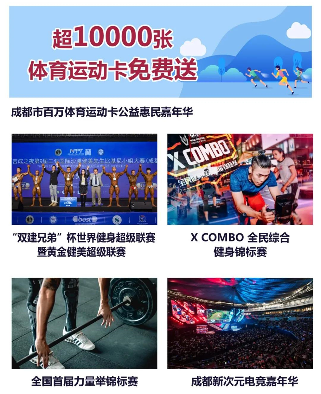 它還有2020xcombo綜合健身錦標(biāo)賽、成都新次元電競(jìng)嘉年華等更多面向全成都體育運(yùn)動(dòng)愛(ài)好者的賽事活動(dòng),以及面向青少年的體育運(yùn)動(dòng)培訓(xùn),面向健身康體、戶外運(yùn)動(dòng)、場(chǎng)館設(shè)施企業(yè)的展覽展示,將打造一場(chǎng)全民參與,全民共享的體育運(yùn)動(dòng)狂歡盛宴。
