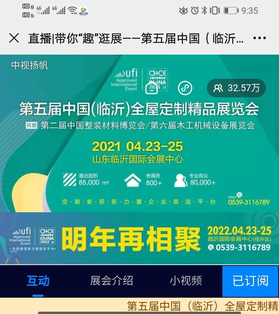 線上線下同步展示,展會期間還通過全網多媒體直播的形式全程同步直播展會盛況,斬獲全網播放量32.57萬,還有我們的視頻號“趣逛展”和臨沂交通旅游廣播,讓不能到現場的采購商通過手機屏幕了解展會及企業產品,與展會現場實現互動溝通。觀眾們通過展會線上云展廳高效觀展,進一步拓展了博覽會交流渠道與市場空間,促進了平臺經濟、共享經濟健康發展,打造了專業定制家居行業交流平臺。
