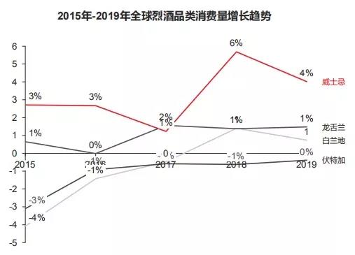 在全球烈酒市場中,威士忌是第一大品類,也是上升勢頭最猛的品類之一。2019年,威士忌銷售額占全球烈酒銷售的23%,且保持著3.16%的年平均增幅(烈酒整體年均增長率1.7%)。全球市場經歷了2020年下跌后,2021年迎來高速反彈,帝亞吉歐2021上半年財報顯示威士忌銷售額同比上升15%。