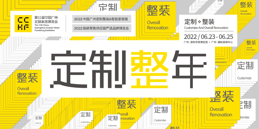 6月23日-25日,第11屆中國廣州定制家居展覽會/2022中國廣州定制整裝&智能家居展覽會/2022裝修零售供應鏈嚴選品牌博覽會將在廣州保利世貿博覽館·廣州國際采購中心盛大舉辦。