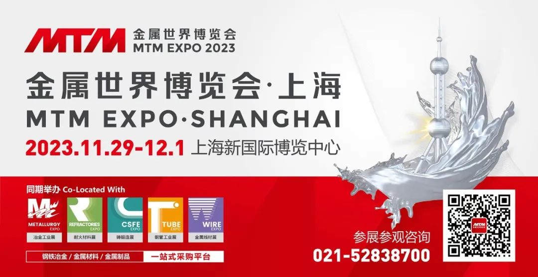 時隔兩年,鋼鐵冶金行業盛會 ——2023MTM金屬世界博覽會回歸上海,將于11月29日至12月1日在上海新國際博覽中心隆重召開。