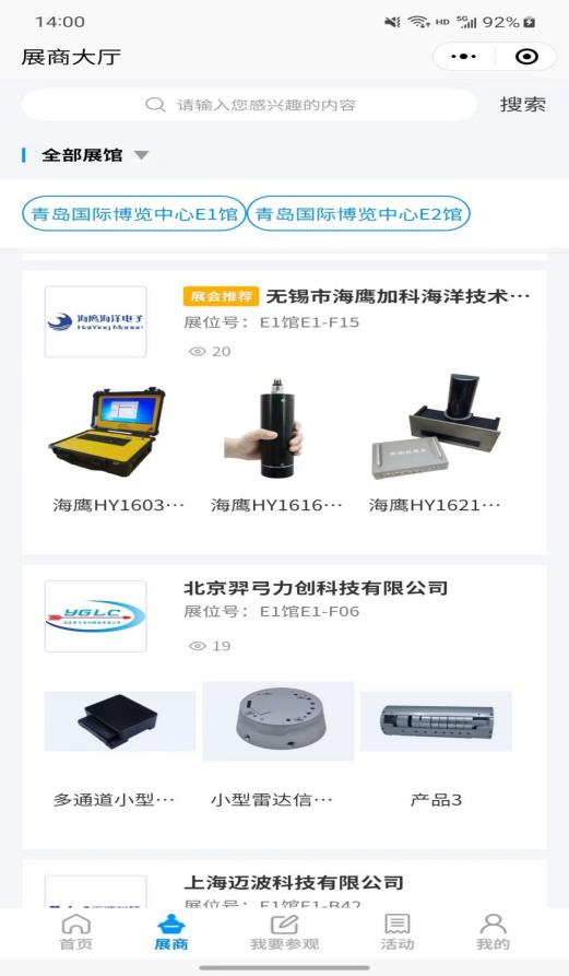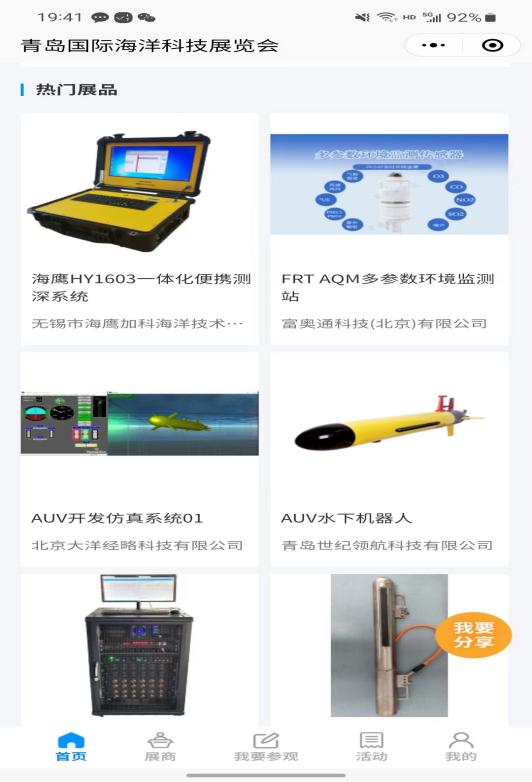 您可以通過展商秀平臺提前預覽2023(第八屆)青島國際海洋科技展覽會參展商、展品、主題論壇、同期活動等展會相關(guān)內(nèi)容,實時掌握青島海科展咨詢、預約洽談,報名參會!