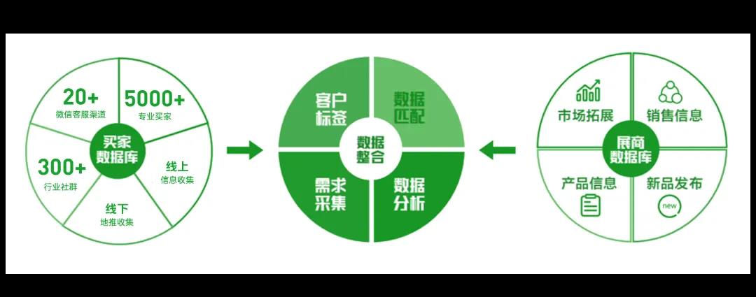大數據精準雙向匹配,解決買家貿易溝通,代理洽談,展商市場拓展,業績提升雙向需求。