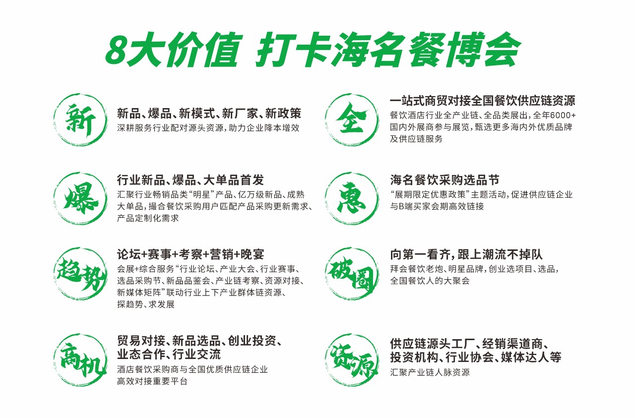 10年磨一劍,海名餐飲供應鏈系列展無論在展會規模、影響力以及展會效果等方面,均取得行業的認同;創新價值模式,打造餐飲供應鏈“會展+產業”綜合服務平臺。其中海名成都餐博會作為中西部區域全產業鏈、全品類、全渠道的行業盛會,始終引領著餐飲行業發展;不僅面向全國用戶展示餐飲供應鏈領域的年度新品、爆品、先進技術、定制化解決方案等,更是促進行業發展,屬于餐飲酒店采購商與全國優質供應鏈企業高效對接的重要平臺。