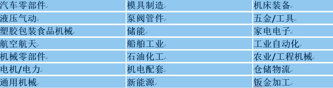 智能制造;數字化工廠整體解決方案/應用軟件;MES、ERP、PLM、WMS、SRM;5G;工業互聯網/應用平臺/配套技術;傳感器;PLC、BC、FTLE、AR/VR、RFID、PDA;網關、工業儀表;工業自動化/系統集成;柔性加工技術;自動化單機/生產線;工業機器人/機器人工作站/應用解決方案/配套設備;非標自動化設備;智能倉儲/AGV/RGV
