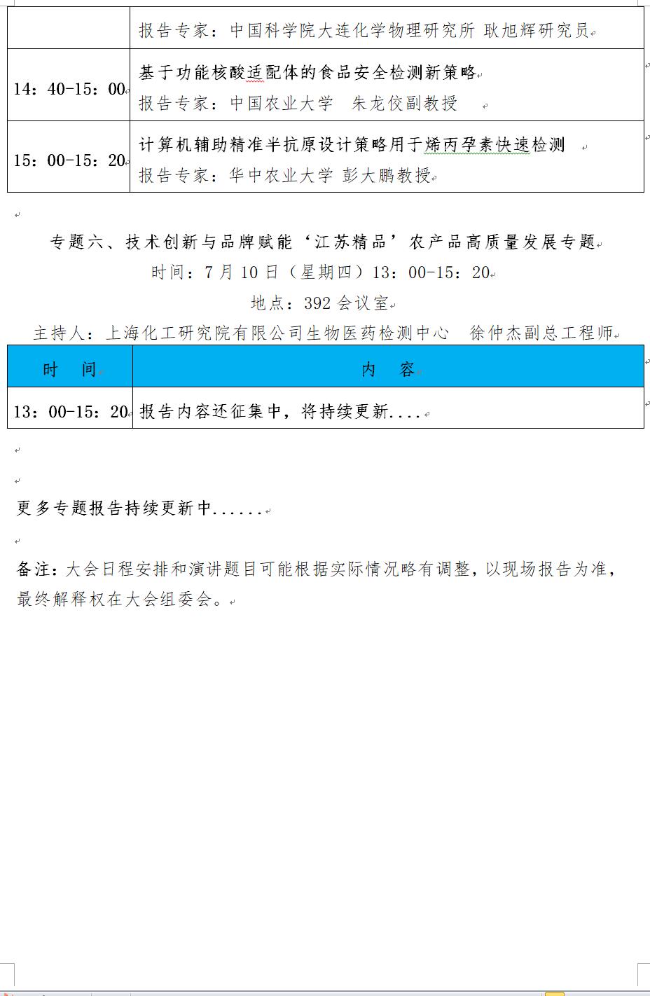 “第十四屆中國(guó)食品與農(nóng)產(chǎn)品安全檢測(cè)技術(shù)與質(zhì)量控制國(guó)際論壇”大會(huì)日程表